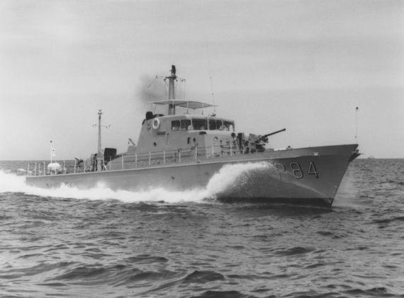 HMAS Aitape commissioned under the command of Lieutenant WSG ‘Sam’ Bateman RAN at HMAS Moreton in Brisbane on 13 November 1967. It was one of 20 Attack Class patrol boats ordered for the RAN in November 1965. The Attack Class was equipped with high-definition navigation radar, magnetic compasses, an echo sounder and air-conditioning for service in northern Australian waters. Their primary role was to conduct patrol work in Australian territorial waters, which, for Aitape and 4 other Attack Class patrol boats, included Papua New Guinea (PNG) which was an Australian protectorate until 1975.