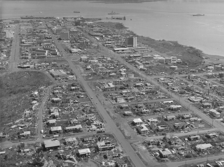 Balikpapan underwent a major refit before commissioning in the RAN and was almost immediately called upon to offer humanitarian relief as part of Operation NAVY HELP DARWIN, the RAN’s assistance mission to Darwin in the wake of Cyclone Tracy which devastated the Northern Territory’s capital city on Christmas Day, 1974. The ship’s company was recalled at 20:00 hours on Christmas Day although many members had by then already reported for duty on their own initiative. Balikpapan, along with her sister ship, HMAS Betano, were the first RAN vessels to depart for Darwin on Boxing Day. The two LCHs arrived in Darwin on 4 January 1975 carrying food and other supplies, and spent the next three days assisting in clean up operations.