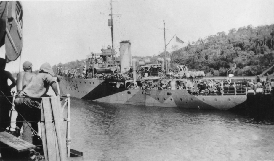 Returning north for escort duty to New Guinea in January 1944 Ballarat (I) was later employed between Thursday Island and Darwin. In August 1944 she ferried troops from Eilanden River (southern Dutch New Guinea) bringing them without loss to Merauke. In 1945 she was minesweeping off Sydney prior to the arrival of the British Pacific Fleet, departing for Manus on 25 February and arriving at Leyte Gulf on 26 March. Ballarat (I) then participated in the operation for the capture of Okinawa (March-May 1945).
