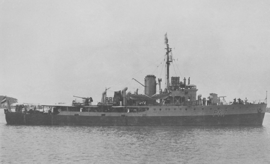 When Japan attacked Pearl Harbor in December 1941 Burnie was in Malayan waters. Thereafter, in company with other Australian corvettes, she helped to oppose the Japanese advance through the Netherlands East Indies. She was engaged in demolition work during this period - blowing up wharves, destroying oil and rubber stocks and military supplies - duties made extremely difficult by the constant Japanese air raids. During this period Burnie, for a time, wore the broad pennant of Commodore JA Collins RAN, then Commodore Commanding the China Force.