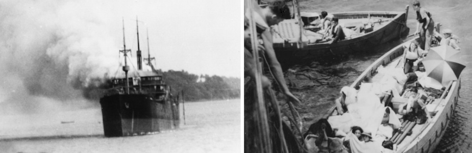 On 3 February 1942 Hobart and Tenedos sighted a lone merchant ship under attack from three enemy bombers. Howden ordered both ships to increase speed and close with all guns firing. The initial attack was beaten off but twenty minutes later more aircraft appeared renewing the attack with vigour. The burning merchant ship was identified as the Norah Moller, and many on board had become casualties.