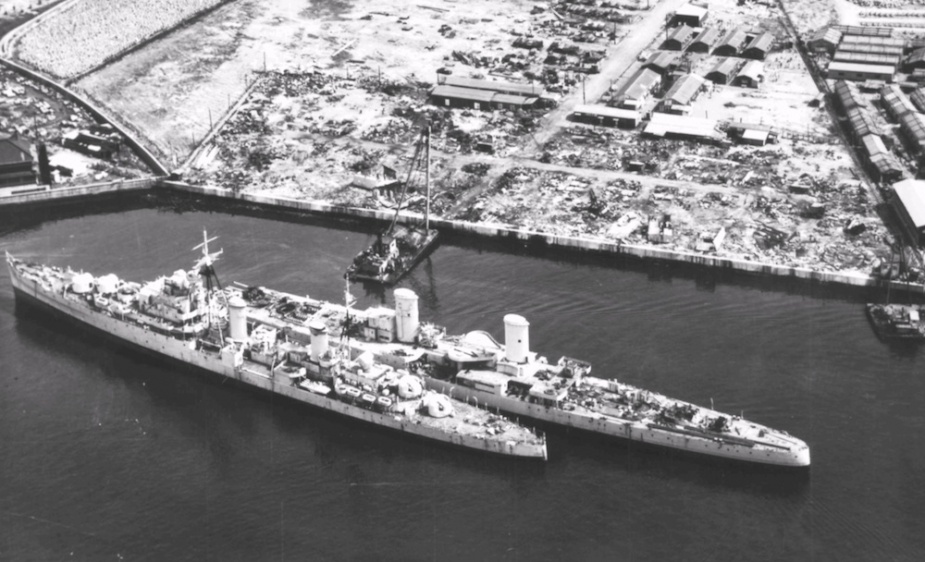 On Sunday 1 February 1942 Hobart berthed at Keppel Harbour, Singapore. By then the Japanese army had breached the causeway and a desperate rearguard action was being fought by Allied soldiers. Hobart took on ammunition and stores while her crew commandeered anything of value to deny it to the advancing enemy, this included a small 1939 Austin tourer motor car that Captain Howden brought back to Australia and which later became his pride and joy. Seven air raids were recorded during the day and a considerable number of bombs fell into the harbour. Hobart and HMS Tenedos cleared the harbour at 18:00 on 2 February and shaped a course for Tanjong Priok in the Dutch East Indies. Singapore was clearly lost and its surrender on 15 February came as no surprise. Three hours out of Singapore the ships encountered HMAS Vendetta under the tow of the destroyer Stronghold. After a long, slow tow she eventually made it back to Australia.