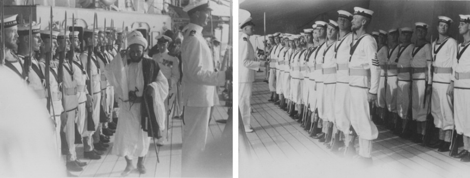 During this period Hobart paid courtesy visits to the Kamaran Islands, Hodeida (Yemen) and Mocha in the Red Sea. The visit to Hodeida saw Hobart anchor outside the three mile limit as Yemen was a neutral country. A 21 gun salute was fired in honour of the Prince of Yemen, Prince Seif Allslam Al Hussein, who returned the honour with a visit to the ship and gifts of goats and eggs which were carried on board by his colorful bodyguard.