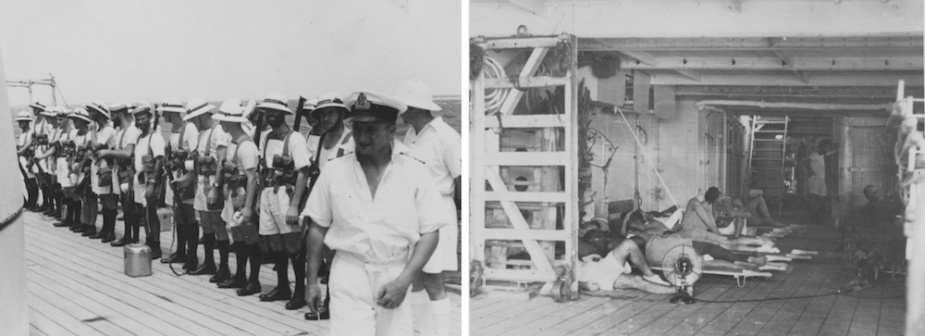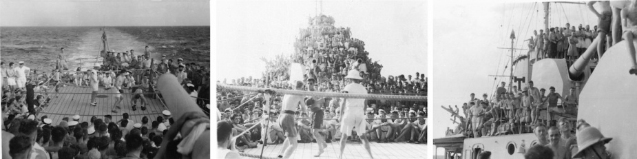 On arrival at Aden later the same day the GOC Somali force and his staff were landed and all wounded were discharged ashore with the exception of two severe cases who were detained in Hobart for treatment until 22 and 26 August respectively. On 22 August an advance party of the 2nd Battalion, the Black Watch Regiment, was embarked the remaining joining the following day. Altogether some 20 officers and 661 other ranks were embarked after which the ship put to sea bound for Suez. En route a boxing match between members of Hobart’s crew and the Black Watch was held on the upper deck, which proved a distraction from the events of the previous few weeks.