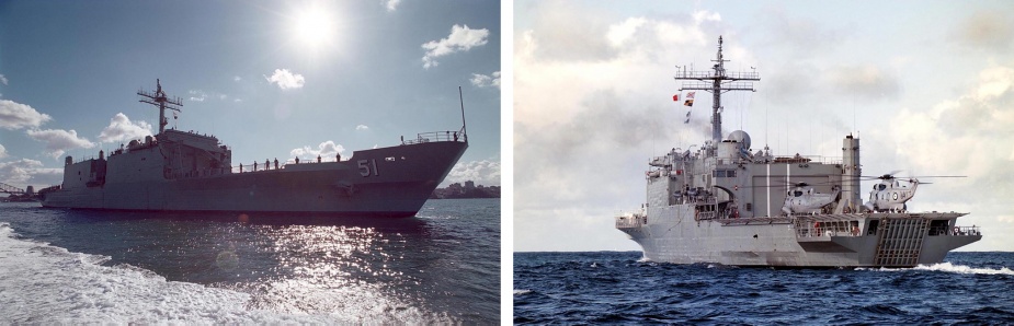 Left: Kanimbla and Manoora alongside at Gulfport with the tug Elsbeth II in attendance (Scott Hooper). Right: The two LPAs at rest at Gulfport Mississippi (Scott Hooper).