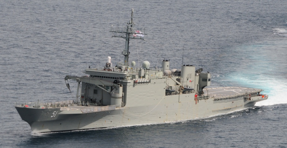 Kanimbla as she appeared following her refit. Notable changes included significant alterations to the bow and the addtion of a 70 tonne crane.