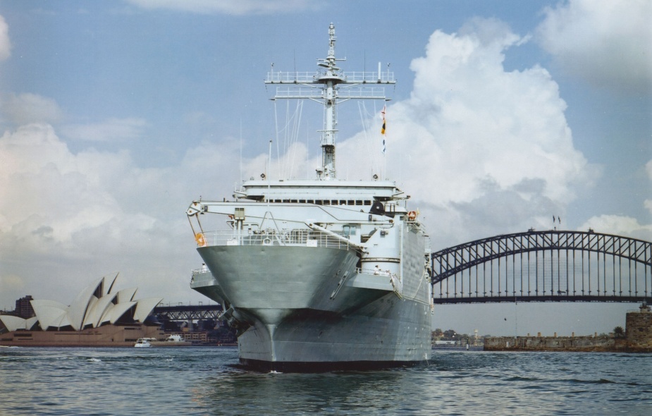HMAS Kanimbla departing Sydney Harbour for Operation RELEX, 31 May 2002.