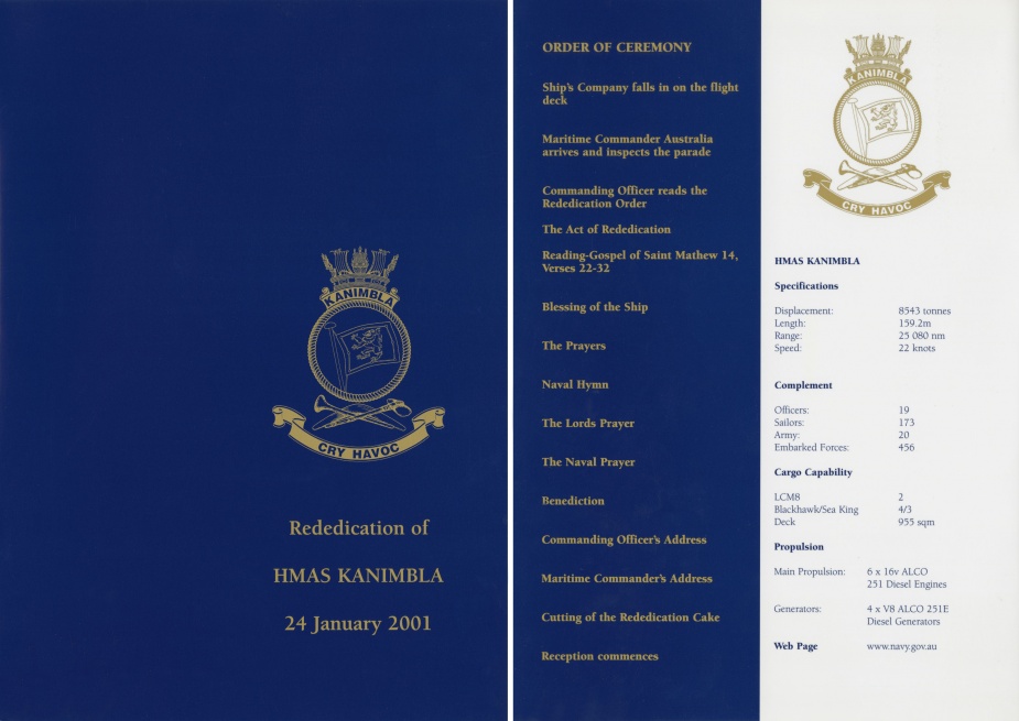 Kanimbla"s redidication order of service, 24 January 2001.