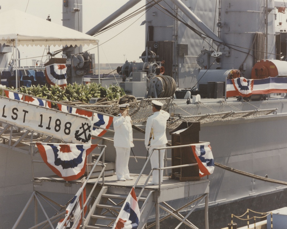 Fiscal year 1994 began with a determination that Saginaw would decommission in June that year and be turned over to the Royal Australian Navy. In February 1994, the "Hot Ship" turnover process began with the arrival of the standby Royal Australian Navy crew. The Saginaw was subsequently decommissioned by Admiral Picotte, Commander, Amphibious Group TWO on 28 June 1994. Delays in the legislative process surrounding the official transfer of the ship to the RAN saw the Saginaw deemed "In Service Special", and assigned a caretaker crew that was derived from the decommissioning crew members to maintain the ship in working order until the legislation was passed.