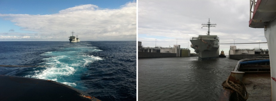 Contract negotiations were completed in early May 2013 and the disposal contract was signed on 20 May 2013. Both ships were subsequently towed in tandem, by the ocean going tug Salvage Ace across the Pacific Ocean and through the Panama Canal where the tow was taken over by the Smith Maritime tug Elsbeth II on 12 September 2013. From Panama they were towed to Gulfport Mississippi arriving there on 3 October 2013.