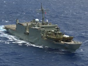 Following a brief maintenance period, Kanimbla deployed on 31 October 2006 in support of Operation QUICKSTEP, the ADF contingency operation to evacuate Australians from Fiji in the face of an emerging coup. This operation was marred, on 29 November 2006, by the loss of an Australian Army Blackhawk helicopter which crashed while attempting to land on Kanimbla’s aft flight deck. It was lost over the side of the ship, resulting in the deaths of two of the ten crew members.