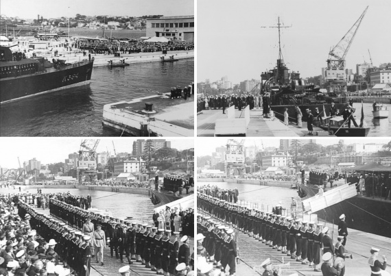 On 24 March 1945, with the Governor-General and his wife, Their Royal Highnesses the Duke and Duchess of Gloucester embarked, the ship made a ceremonial entry into the new Captain Cook Graving Dock to officially open it by breaking a ribbon stretched across the entrance. This was not the first use of the dock, however, as the aircraft carrier HMS Illustrious had been taken in for emergency repairs earlier in the month.