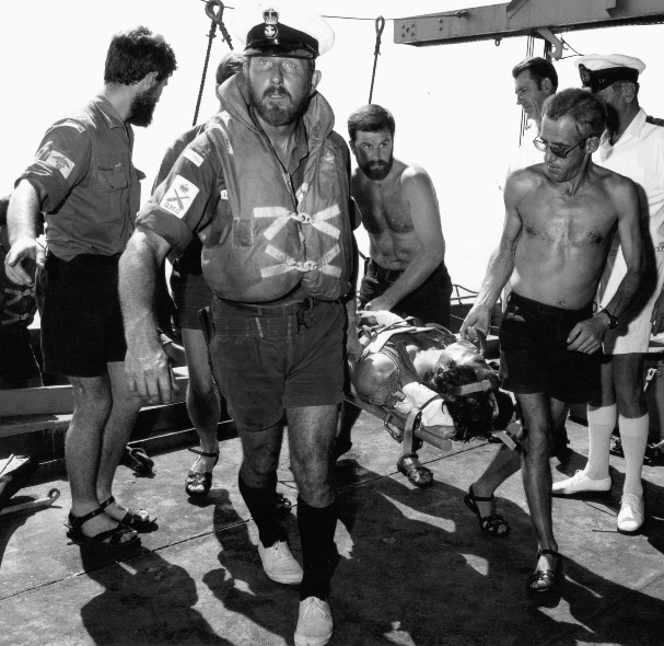 The flagship again visited Pearl Harbor in February 1974 with 120 Army personnel having joined the ship for the passage in order to participate in Exercise PACIFIC BOND TWO. Upon her departure from Hawaii on 23 February, Melbourne embarked a US Coast Guard Sikorsky HH 52 Seaguard helicopter to affect a medivac from a US Coast Guard cutter some 1100km north east of Hawaii. The cutter USCGC Mellon had embarked the survivors of the Italian supertanker Giovanna Lolli-Ghetti which had suffered an explosion two days earlier with the loss of seven lives. One survivor required urgent medical attention and was evacuated by the Seaguard once they were within operational range of Hawaii.
