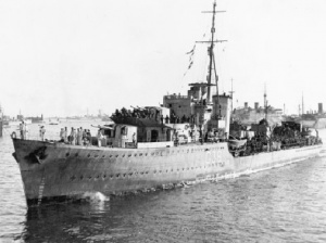 On 1 August 1945, escorting Arbiter, was proceeding to rendezvous with Task Force 37 in the vicinity of Saipan. On 2 August investigated the Japanese hospital ship Kiru Maru bound from Yokosuka to Marcus Island - the hospital ship was permitted to proceed.