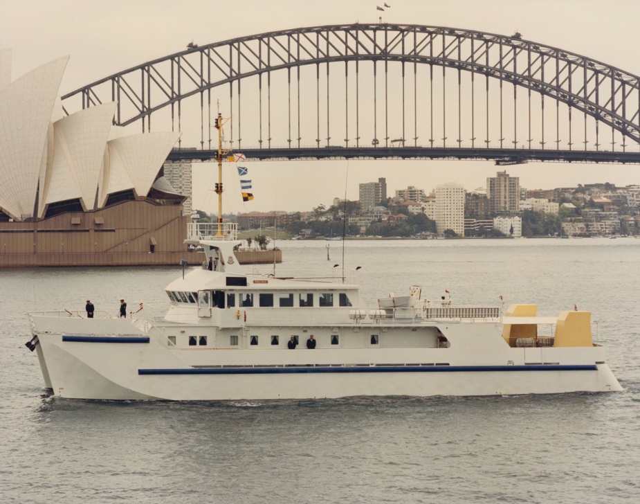 HMAS Paluma (IV) was the first of 4 Paluma class coastal survey ships (AGSC), commonly referred to as survey motor launches, commissioned by the Royal Australian Navy (RAN) designed for hydrographic survey operations in the shallow waters of northern Australia. Their twin hulls provided good stability in heavy conditions, and good living room and space below the main deck. In addition, the catamaran hull sat well out of the water, the ship drawing only 2.2 metres, a favourable characteristic when surveying shoals and reefs. All data collected by the ships was forwarded to the Australian Hydrographic Office for subsequent publication in navigational charts. Surveys were often conducted in concert with other AGSCs, in Paluma’s case most commonly with HMAS Mermaid, or the Laser Airborne Depth Sounder flight.