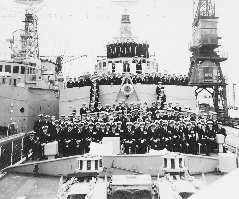 Queenborough was one of eight Q Class destroyers built for the Royal Navy. She commissioned in the Royal Navy as HMS Queenborough on 30 November 1942 under the command of Commander Eric Percival Hinton, DSO, MVO, RN. HMS Queenborough served with distinction in the Arctic, the Mediterranean and the Indian and Pacific Oceans.