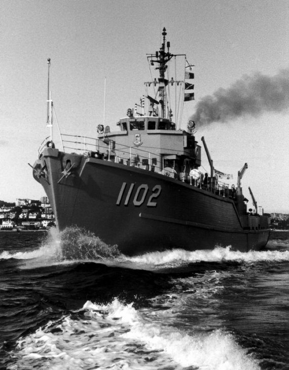 In February 1980, Snipe, Ibis and Curlew visited Tasmania to participate in festivities for the Hobart Regatta as well as undertaking mine countermeasures exercises including a team sweep along the northern Tasmanian coast. This sweep of 90 miles in 40 hours was the longest sweep attempted since the Second World War and was a record for RAN Ton Class MCMs. The trio followed this with a South-West Pacific deployment from March to June which included visits to Port Moresby, Lombrum, Rabaul, Port Vila, Suva and Noumea, as well as exercises with the Papua New Guinean, Fijian and French navies. Snipe and Curlew returned to the South-West Pacific in June 1981, however, this programmed 2 month deployment ended abruptly on 3 July when Snipe ran aground on a coral reef while entering Nuku’Alofa harbour. Snipe was refloated within hours but spent 8 days in Tonga undergoing repairs.