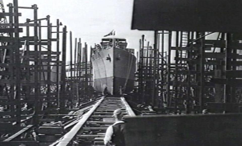HMAS Stawell was one of 60 Australian Minesweepers (commonly known as corvettes) built during the Second World War in Australian shipyards as part of the Commonwealth Government’s wartime shipbuilding program. Twenty were built on Admiralty order but crewed and commissioned by the Royal Australian Navy (RAN). Thirty-six (including Stawell) were built for the RAN and 4 for the Royal Indian Navy.