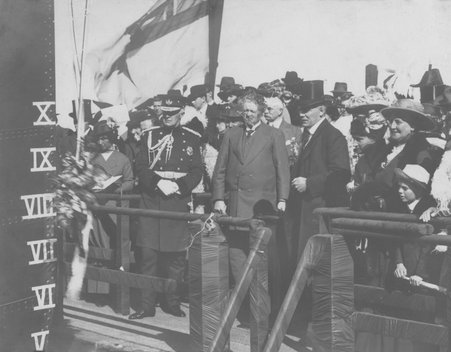 Torrens was laid down on 25 January 1913 at Cockatoo Island Dockyard, Sydney. She was launched by Lady Helen Munro-Ferguson, wife of the Governor-General on 28 August 1915 and was later commissioned at Sydney on 3 July 1916 under the command of Lieutenant Kenneth P Dalglish RN.