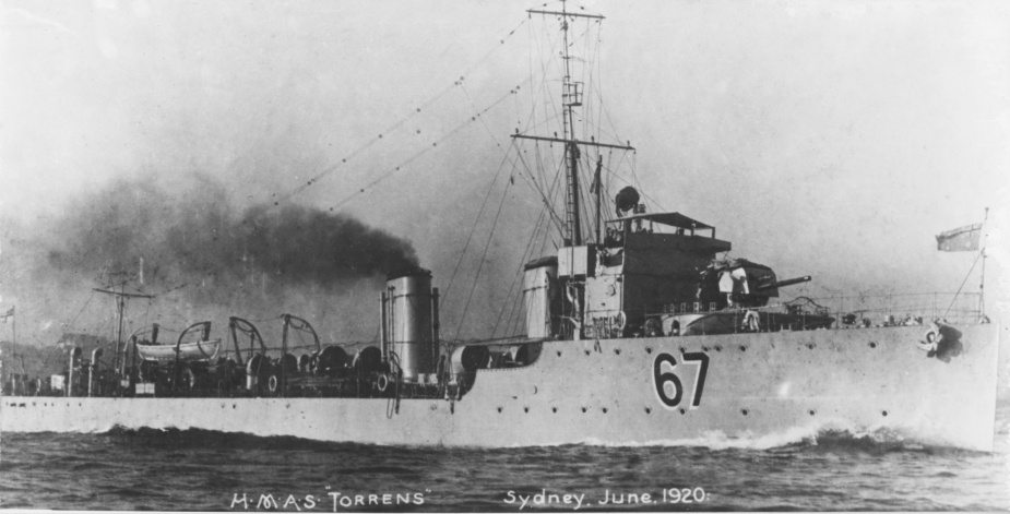 From June 1924 to mid March 1925 Torrens was based at Westernport for Royal Australian Naval Reserve training. From Westernport she proceeded to Port Adelaide for similar service. On 11 March 1926 the destroyer arrived in Sydney, from Adelaide, and was decommissioned on 12 May 1926.
