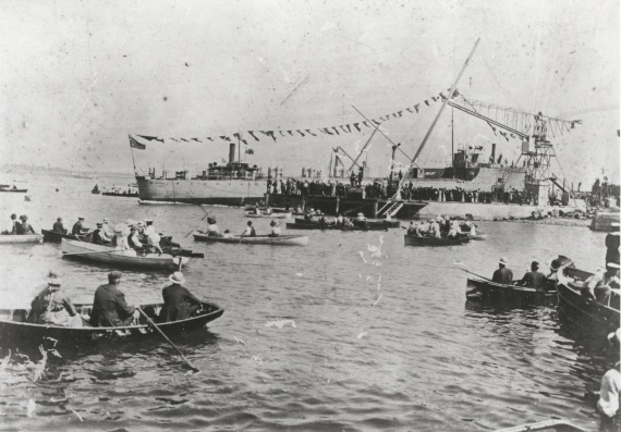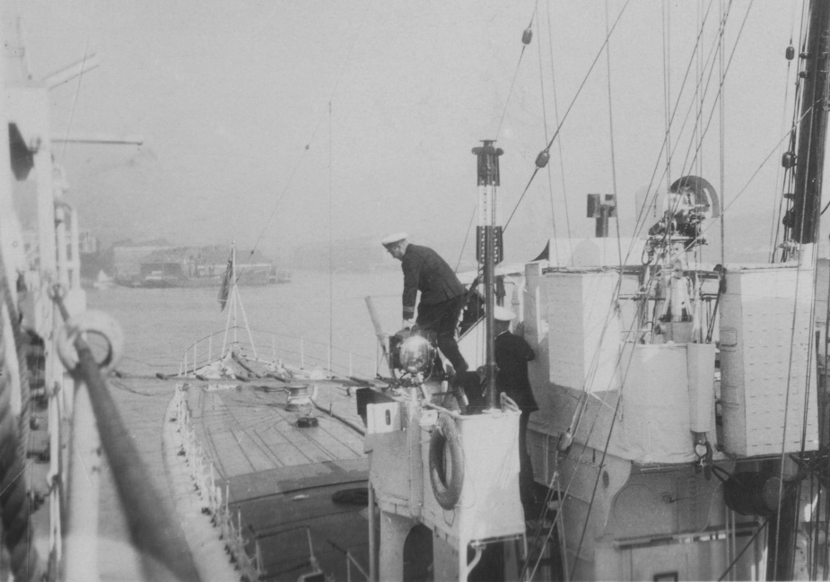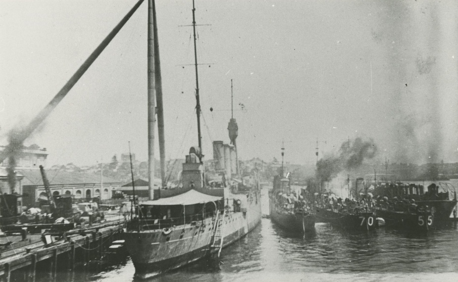 Warrego (I) was built in the United Kingdom, dismantled, and the parts shipped to Cockatoo Island Dockyard, Sydney, where the ship was reassembled by Australian workers to give them experience in ship construction. On 16 March 1912 Commander George F Hyde was appointed in command prior to the ship’s commissioning at Sydney on 1 June 1912. On 4 October 1913 Warrego formed part of the Australian Fleet Unit’s historic entry into Sydney Harbour.