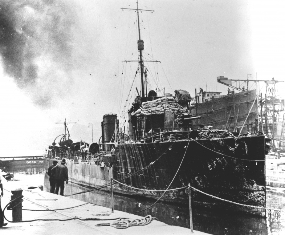 Joined first by a French flotilla and later by Royal Navy destroyers, the Australian ships eventually became part of an anti-submarine force numbering more than 200 vessels. During the early period of their involvement, the enemy, whose submarines were based in Pola at the head of the Adriatic, was active and detection and chases were common place. Later, however, as the Allies implemented more effective sea control and sea denial measures, the enemy’s effort diminished significantly. As new methods of detecting submarines were developed Huon (I), Parramatta (I) and Yarra (I) were each fitted with captive observer balloons whose object was to detect lurking submarines from the air while attendant destroyers stood by ready to act as ‘killer’. Other duties involved screening British and Italian cruisers and bombarding the Albanian port of Durazzo on 2 October 1918.