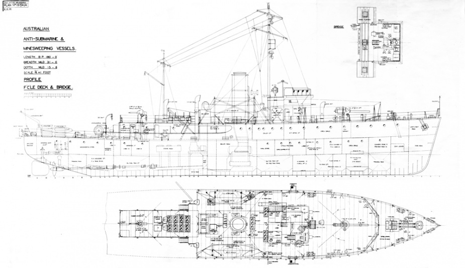 HMAS Wollongong (I) was one of 60 Australian Minesweepers (commonly known as corvettes) built during the Second World War in Australian shipyards as part of the Commonwealth Government’s wartime shipbuilding program. Twenty (including Wollongong) were built on Admiralty order but crewed and commissioned by the Royal Australian Navy (RAN). Thirty-six were built for the RAN and 4 for the Royal Indian Navy.